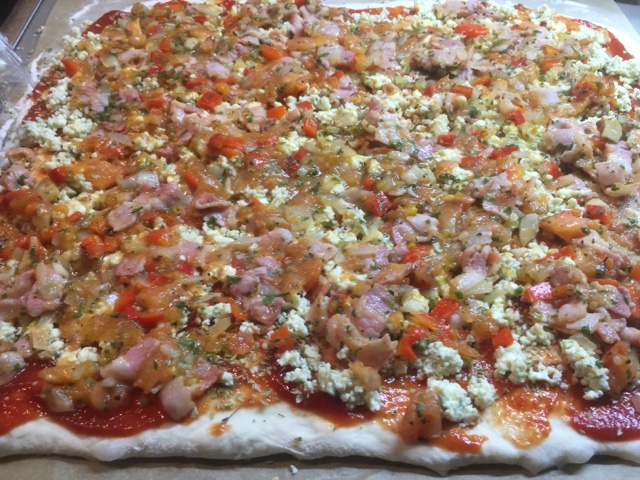 - Levitä taikinalevylle ketsuppi ja oregano.